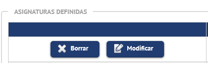 En la Relación de asignaturas, pulse el botón Borrar correspondiente a la relación que desee eliminar o modificar.