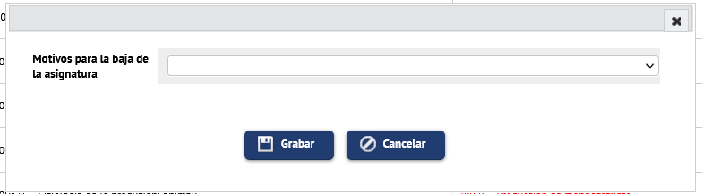 En el desplegable que le aparecerá, seleccione el motivo para la baja de la asignatura.