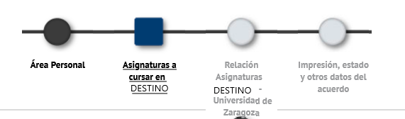 El gráfico central le indica en qué parte del procedimiento se encuentra. En principio, está en Asignaturas a cursar en... [Universidad de destino]